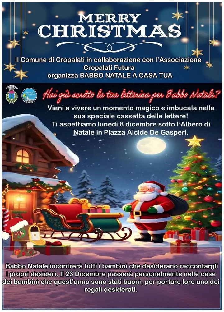 🎄 Natale a Cropalati 2025 🎄 L’Amministrazione Comunale è lieta di presentare “Natale a Cropalati”, un programma ricco di appuntamenti pensato per le famiglie, per i bambini e per i ragazzi, con l’obiettivo di vivere insieme la magia delle feste e valorizzare il nostro paese. ✨ Accensione dell’albero